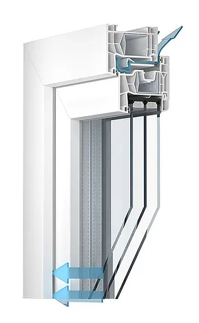 Großes Verglasungsspektrum bis 58 mm Dicke zum Einsatz von 3-fach Verglasung oder speziellen Funktionsgläsern.